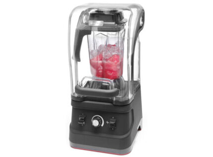 Blender / Smoothie-maker. Digital Med støyreduksjons-deksel. Trinnløs digital hastighetsjustering fra 8350-24800 o/min., samt pulsknapp. Uknuselig miksebeholder på 2,5 liter, tåler temp fra -40 til +90 gr.C. Rustfri mikseredskap, knuser også is. BxDxH: 25,2x25,8x54,7cm