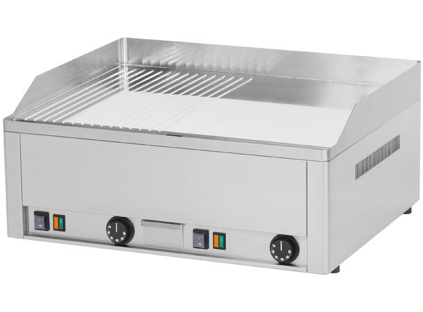 Flatgrill 1/2 rillet+1/2 glatt Høyglanspolert, 2 stekesoner 230V