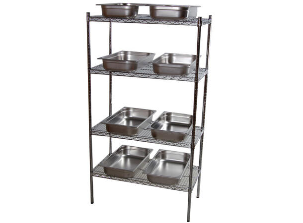 Rustfri hyllereol med fire hyller BxDxH: 80x50x180cm