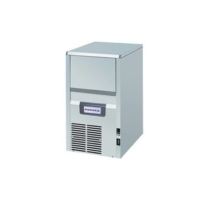 Type: KL22 Porkka NY Mål: 35x46x59cm(61cm høyde med bein) Kapasitet: 23 kg/døgn Kapasitet binge: 6,5 kg Strøm: 230V-1FAS Kjøle-effekt: 350 W Vekt: 36 kg Luftkjølt