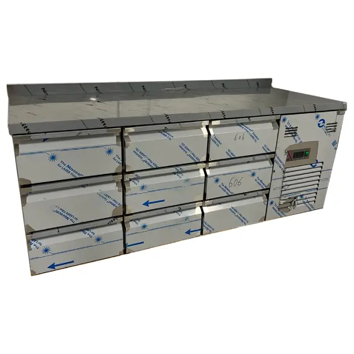 Kjølebenk 185 cm med bakkant og 9 skuffer – 1/1-100 mm.