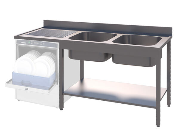 Oppvaskbenk, to kummer venstre 160x70x90cm