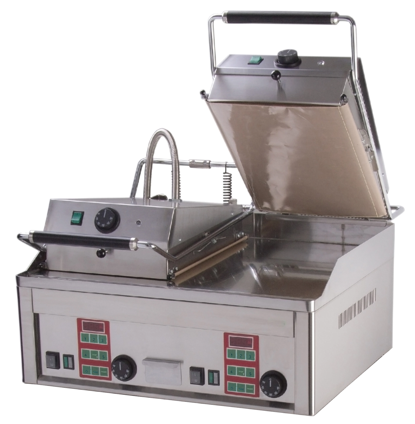 Pressgrill, bordmodell – Rustfritt stål og teflon, 2 stekesoner.