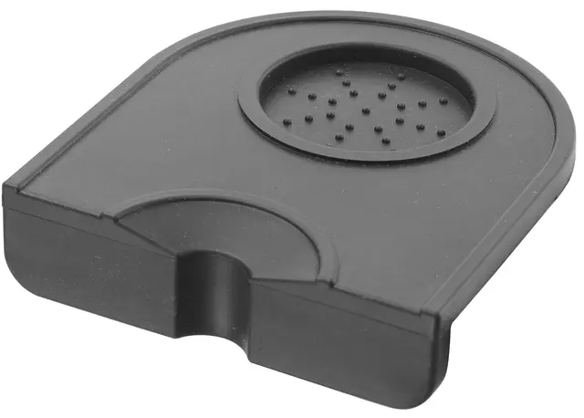 Silikonmatte med plass til en filterholder og en kaffetamper.
