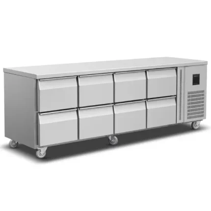 Kjølebenk 8 skuffer Ventilert kjølebenk med 8 skuffer. Kapasitet på ca. 540 liter og med en driftstemperatur på -2 til