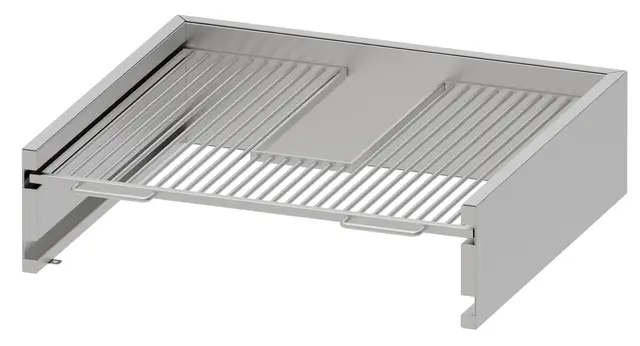 I rustfri utførelse. Hvilehylle for kjøtt, holder maten varm før servering.