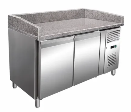 Pizzakjølebenk med dobbelt grnityrkjølekapasitet og låsbarehjul